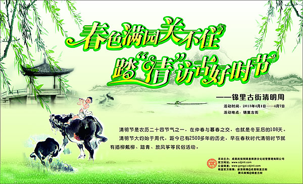 活动时间:2013年4月1日—4月7日 活动地点:锦里古街 清明节是农历二十四节气之一,在仲春与暮 […]